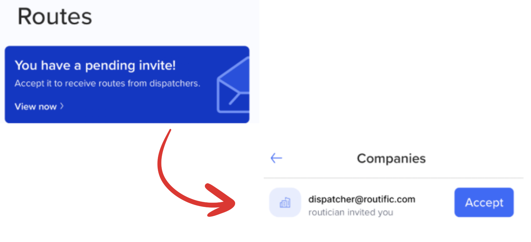 Once you're logged in, you'll be prompted to accept your invitation. Click Accept, and you are now ready to receive routes!