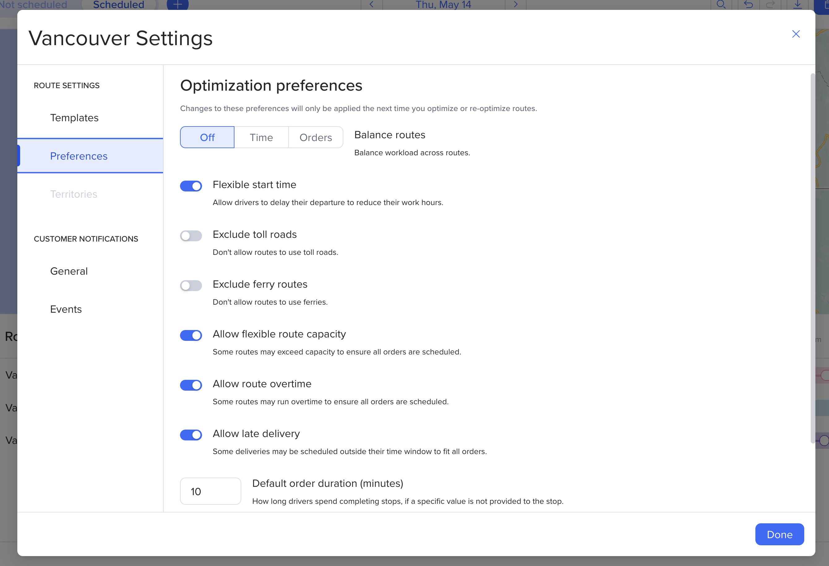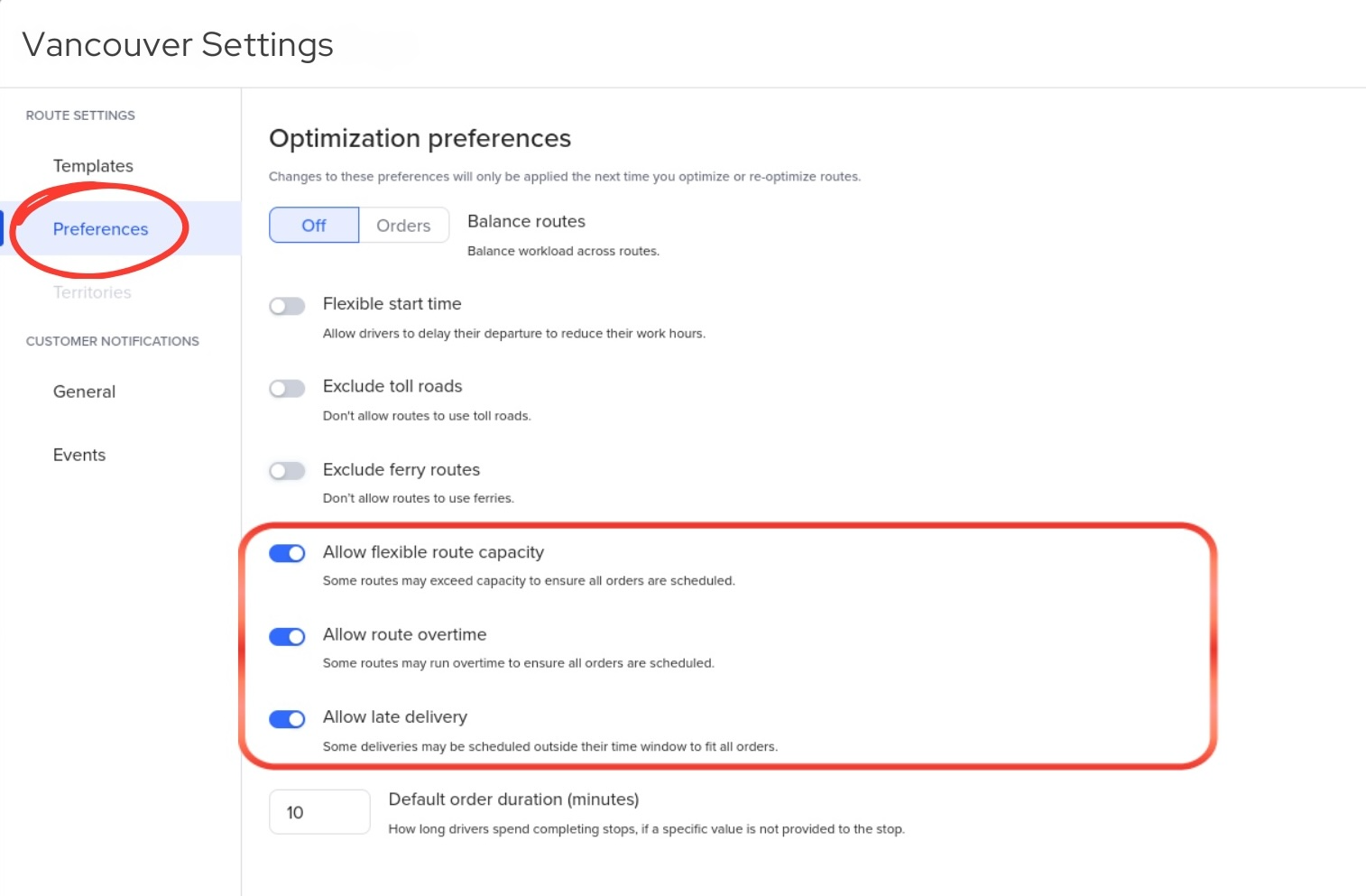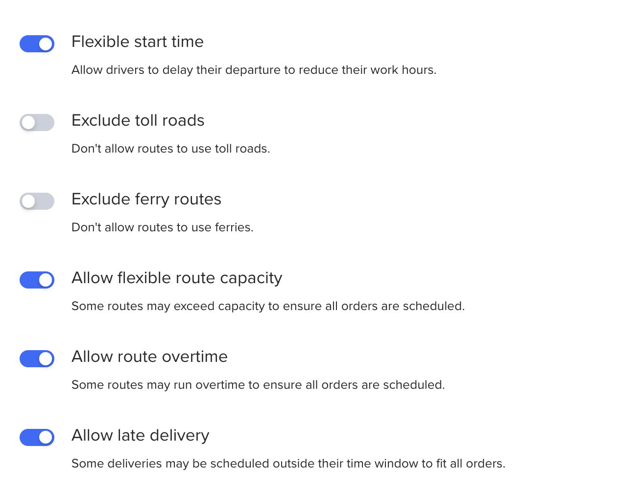 These settings put you in control. Instead of rigid rules slowing you down, you choose how Routific responds.