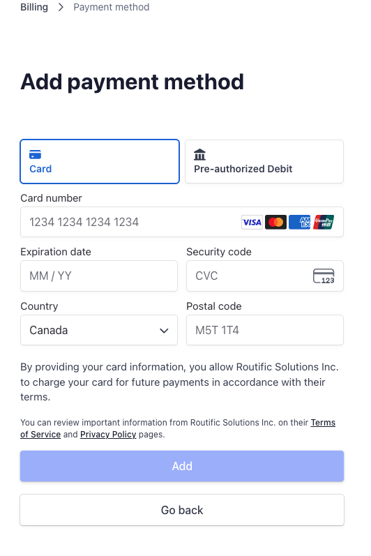 How to change your credit card information | Routific