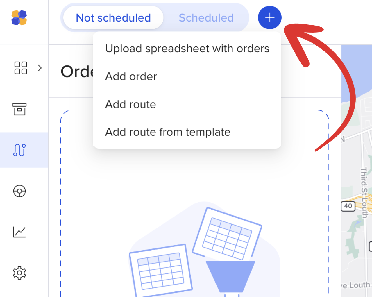 If you don't have a spreadsheet, you can add orders manually. Just click the + button, then click Add Order
