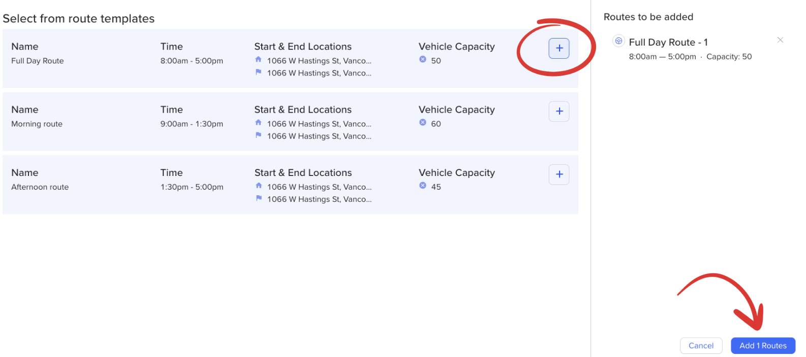 Choose which routes you want to add by reviewing the templates and clicking the plus sign (+) associated with them on the right-hand side. Then click Add Routes in the bottom right-hand corner.