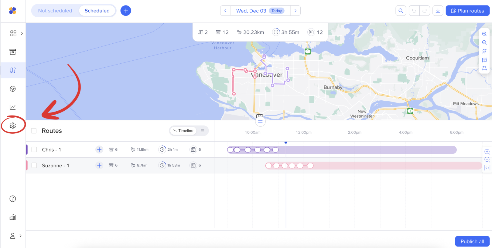 You can create, edit, or delete Route Templates whenever you like. Click the gear icon at the left-hand side of your screen.
